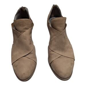 Eileen Fisher Jenkins Beige Nubuck Leather Criss Cross Block Heel Ankle Boots 8