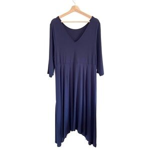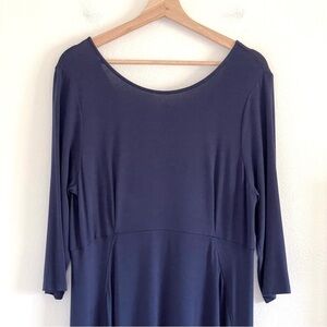 Eileen Fisher Jersey Knit Midi Dress in Blue, Size Large.