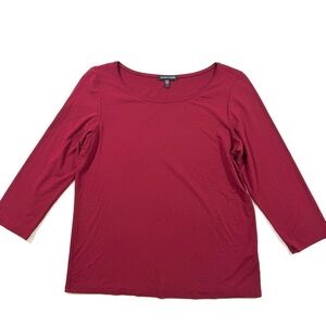 Eileen Fisher Jersey Knit Top Wide Neck Dark Red