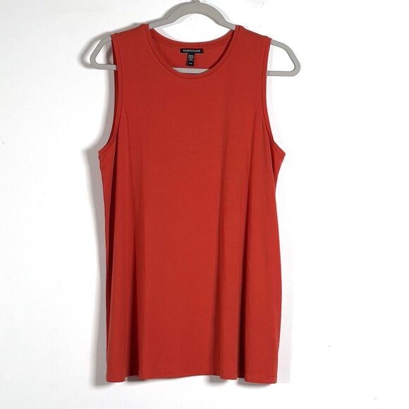 Eileen Fisher Jersey Long Tank Top Womens Sz M Orange Stretch Crew Neck