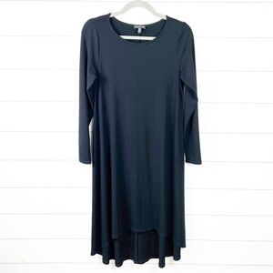 Eileen Fisher Jersey Stretch Long Sleeve Dress Hi Low Hem Black Small Corpcore