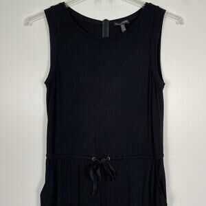 This Eileen Fisher Jumpsuit in size XS is a minimalist and stylish piece perfect for travel, casual outings, or workwear. Made from a soft stretch jersey fabric, this wide-leg cropped jumpsuit features a scoop neckline, sleeveless design, and adjustable waist for maximum comfort and ease of movement. With a solid black color and a leg inseam of 24 1/2 inches, this jumpsuit is lightweight, easy to care for, and perfect for the summer, fall, and spring seasons. Designed by Eileen Fisher, this one-piece jumpsuit offers a relaxed fit and is machine washable for added convenience.