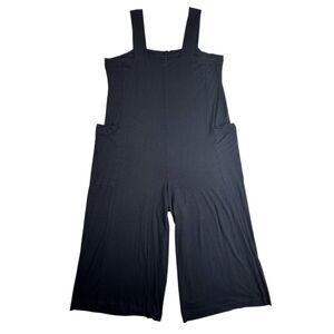 Eileen Fisher Women Jumpsuit L Black Stretch Jersey Pockets Sleeveless Crop