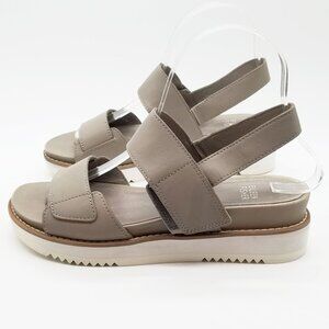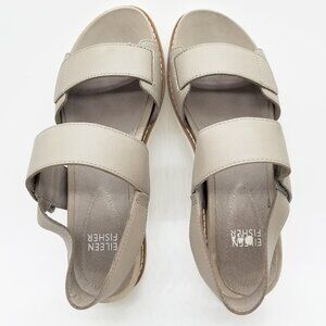 Eileen Fisher Kale Sandals 6.5 Velcro Strap Platform Moon Beige Taupe Gray $207