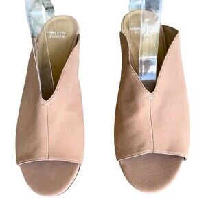 Eileen Fisher Katniss Dusty Pink Open Toe Mules Nubuck Leather Block Heel Sz 11