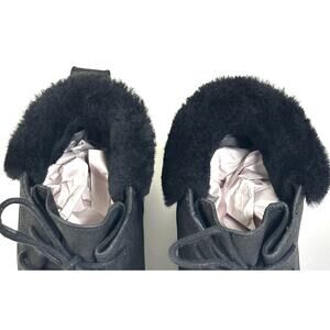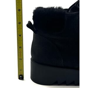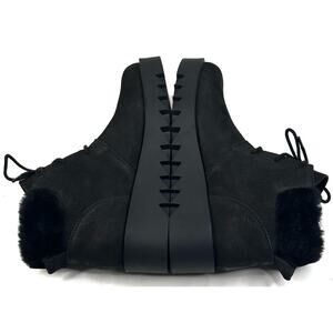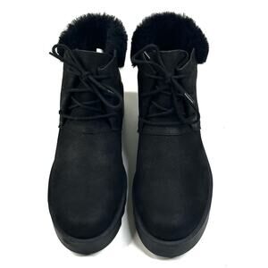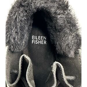 Eileen Fisher Kenille Black Nubuck Bootie Shearling Trim Wedge Womens 7 New $255