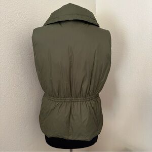 Eileen Fisher Khaki Army Green Down Puffer Sleeveless Vest.