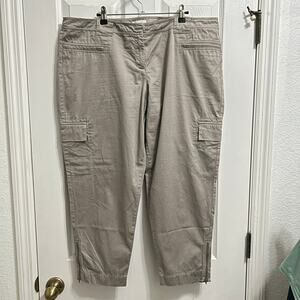Eileen Fisher Khaki Cargo Pants XL Wide Leg 100% Cotton Ankle Zip Casual