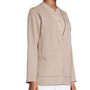 Eileen Fisher Khaki V Neck Boxy Jacket Cardigan Medium NWT Organic Cotton