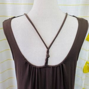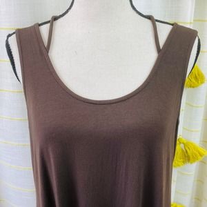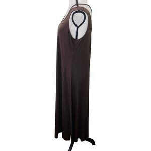 Eileen Fisher Viscose Knit Midi Dress Womens Small Brown Stretch Side Slits Casual Classic A-Line