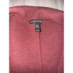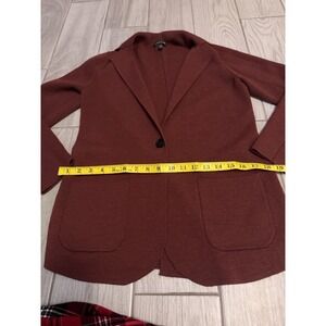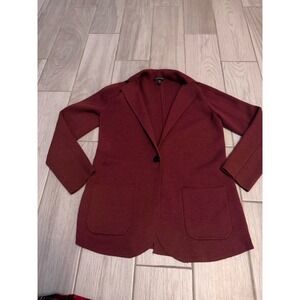 Eileen Fisher Knit Blazer Womens Medium Red Merino Wool Cardigan Sweater
