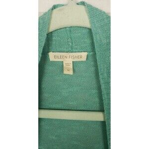 Eileen Fisher Knit Cardigan Open M Slub Green Asymmetric Hem Linen Blend Casual