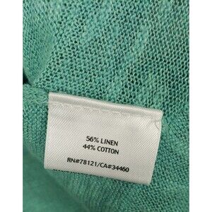 Wrap yourself in the effortless elegance of an Eileen Fisher knit cardigan, a perfect blend of comfort and style. The medium-sized, tight-knit sweater features a rich green hue, boasting a serene and solid pattern that complements any casual or workwear ensemble. Crafted from a luxurious mix of cotton and linen, it promises breathability and a soft touch.