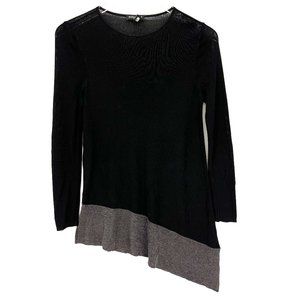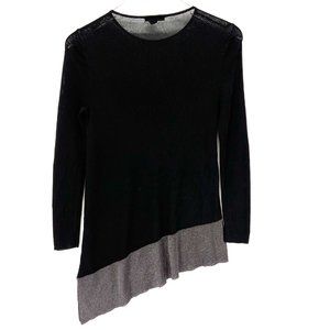 Eileen Fisher Knit Long Sleeve Asymmetrical Tunic Black Metallic Top Size PS