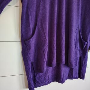 Eileen Fisher Knit Slouchy Pocket Front Tunic Lightweight Sweater Purple Large