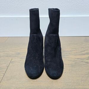 Eileen Fisher Knolls Suede & Recycled Stretch Knit Sock Block Heel Boot in Black