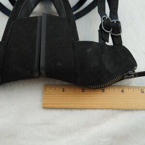 Eileen Fisher Kyra Black Suede Strappy Sandals 7.5 Leather Sole Block Heel Zip