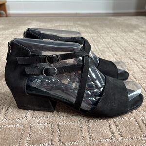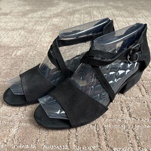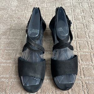 Eileen Fisher Kyra Nubuck Leather Strappy Women's 7.5 Black Block Heel Sandals