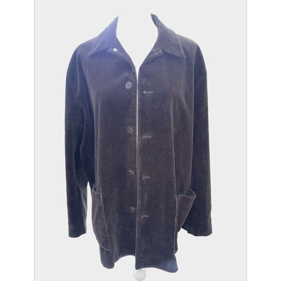 Eileen Fisher L Brown Wide Wale Corduroy Button Jacket Boxy Fit Rayon Lined Coat