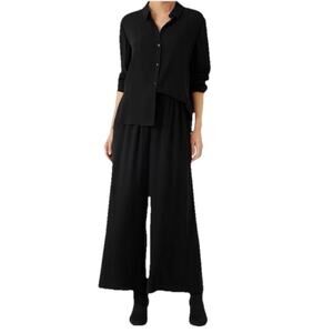 Eileen Fisher L Large Silk Pants Georgette Crepe Pleated Wide Leg Crop Black