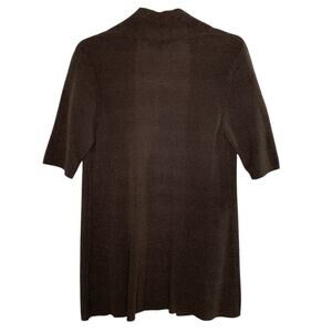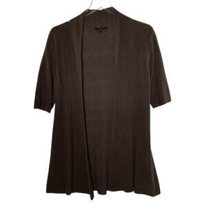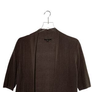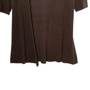 Eileen Fisher L Petite Chocolate Brown Silk Blend Cardigan Short Sleeve Ribbed