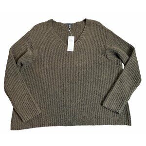 Eileen Fisher LARGE L Organic Cotton Fluff Cashmere Blend V-Neck Sweater NWT$268