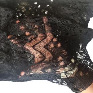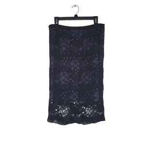 Eileen Fisher Lace Skirt Womens Size M Medium Black Knit Pull On Stretch Elastic Waist Witchy Goth Dark Moody Straight Pencil Knee Length