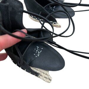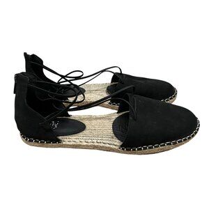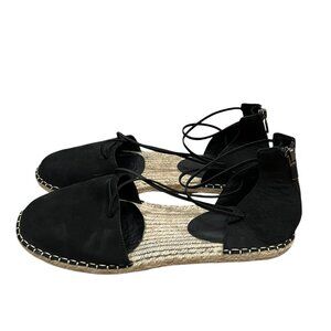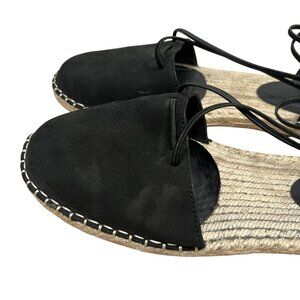 Eileen Fisher Lace Up Espadrille Sandals Size 11 Black Suede Minimal Vacation