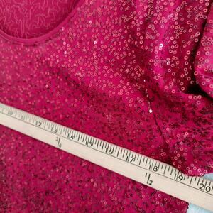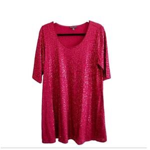 Eileen Fisher Large 100% Silk Red Sequin Tunic Elbow Sleeve Blouse Top Shirt