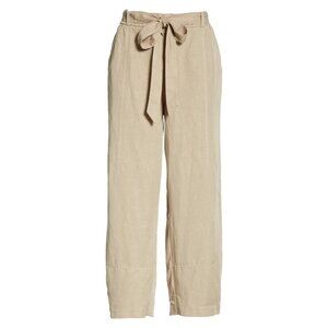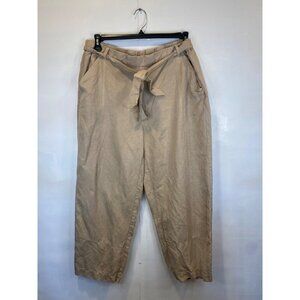 Eileen Fisher Large Khaki Tencel Linen Ankle Pant Tie Waist EUC