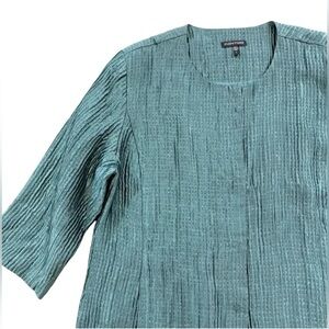 Eileen Fisher Large Muted Turquoise Blue Green Lined Textured Silk Jacket Blazer