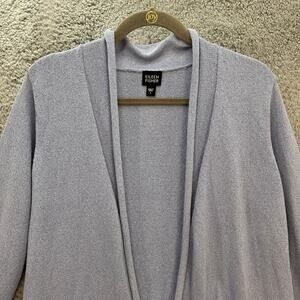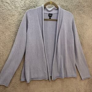 Eileen Fisher Large Silk Blend Open Front Stylish Cardigan Comfort Casual Warm