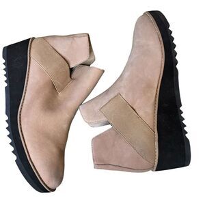 Eileen Fisher Lark Nubuck Leather Wedge Bootie in Wheat NWOB Size 8 1/2