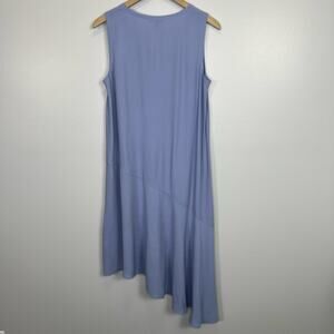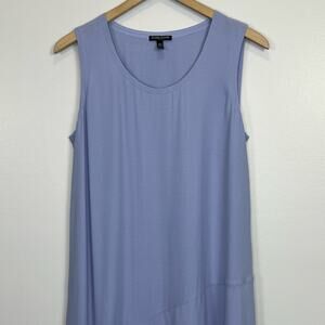 Chic lavender midi dress by Eileen Fisher. Sleeveless with a unique asymmetrical hem. Ideal for versatile styling.