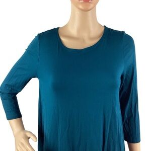 Eileen Fisher Layered Hem Tunic Top Blue 3/4 Sleeve Viscose Stretch XS