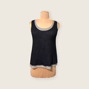 Eileen Fisher Layered Knit Tank XSP Black Taupe Top Sweater EUC Casual Classic