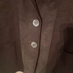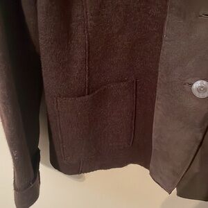 Eileen Fisher Leather Trim Lambs Wool Blazer Sweater