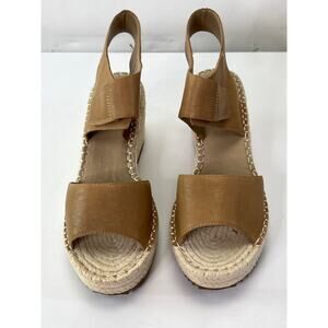 Eileen Fisher Leather Wedge Espadrille Sandals Strap Closure Size 8.5