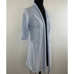 Eileen Fisher Light Blue Half Sleeve Linen Cotton Open Cardigan Sweater S Small