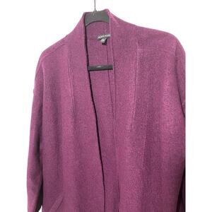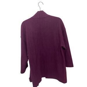 Eileen Fisher Lightweight Boiled Wool High Collar Plum Cardigan