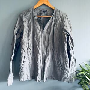 Eileen Fisher Lightweight Zip Up Jacket Large Gray Travel Beach Cruise Women's