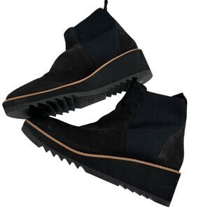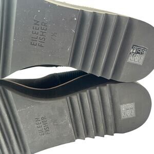 Eileen Fisher Lilou Nubuck Recycled Stretch Knit Black Ankle Boot 2” Wedge Chelsea Size 7.5 Lug Sole Sleek Modern Everyday Minimaist Cottagecore Whimsigoth Witchy Timeless Sustainable Fall Winter