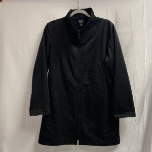 Eileen Fisher Lined Zip Front Rain Jacket Car Coat Black Size Small