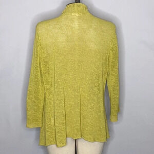 Eileen Fisher Linen Blend 3/4 Sleeve Open Knit Cardigan in Chartreuse - Small