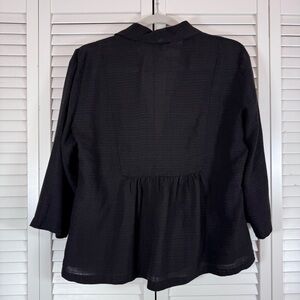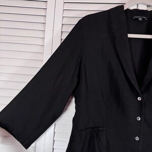 Eileen Fisher Linen Blend Blazer Basketweave Shawl Collar Black Medium