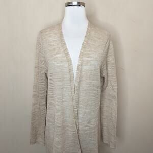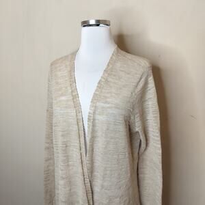 Eileen Fisher beige linen blend open front cardigan sweater. Size L. (23207)