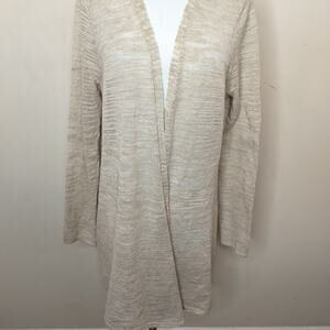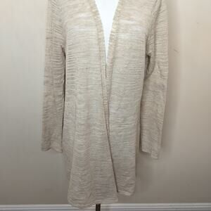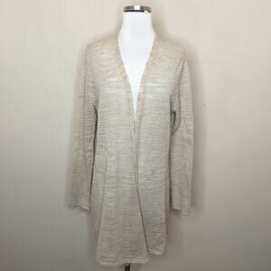 Eileen Fisher Linen Blend Cardigan Open Front Beige