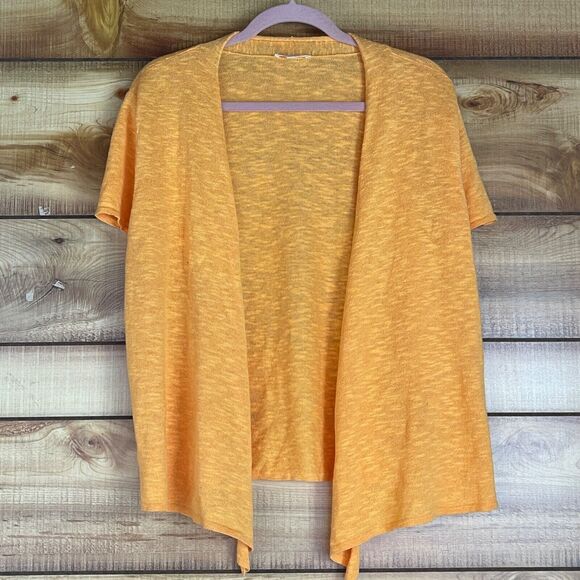 Eileen Fisher Linen Blend Cardigan Sweater Womens Large Open Short Sleeve Orange
