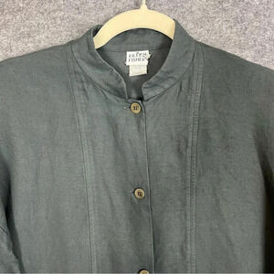 Eileen Fisher Linen Blend Jacket Womens XS Gray Button Front Pockets