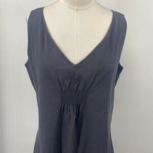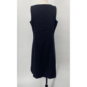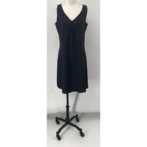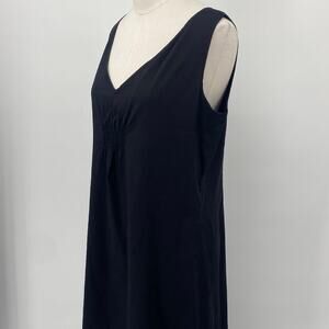 Eileen Fisher Linen Blend Mini Dress A Line Shift V Neck Gathered Bust Black
